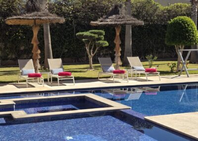 Offrez vous un moment de détente grâce à sa piscine de 17m, son jacuzzi (lui aussi privatif) et son bassin enfants attenant. La villa dispose également de son propre hammam.